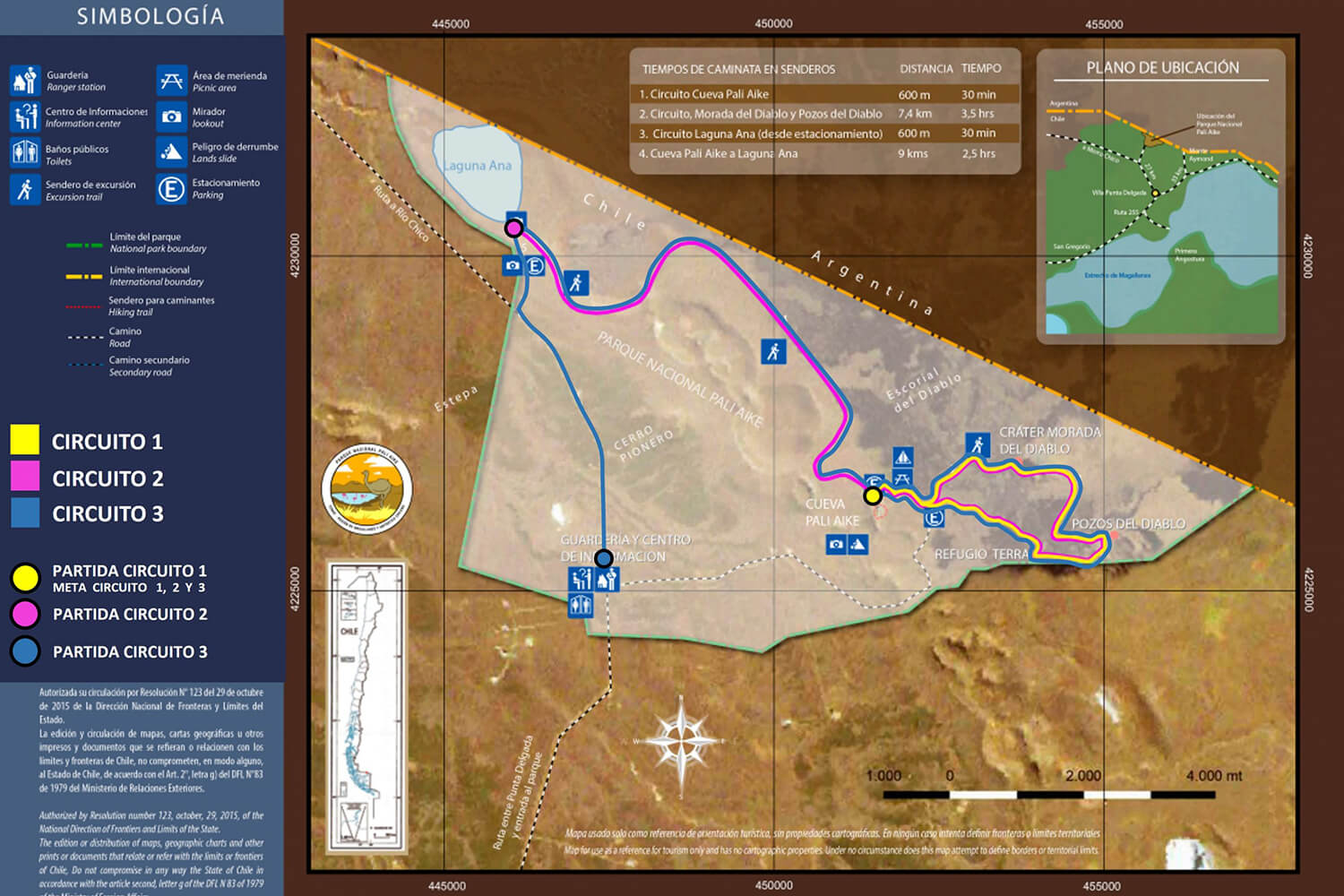 Puedes consultar este mapa del Parque Nacional Pali Aike.