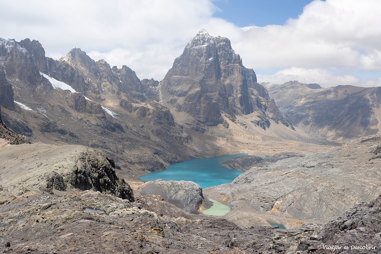 Una vez se llega al Paso Yaucha, es muy recomendable no continuar por el camino clásico, y tomar la variante alpina del Huayhuash. Esto implica tener que ascender unos 100 metros más, pero las vistas compensan el esfuerzo. A unos 4.900 metros de altitud, se tiene una panorámica increíble de algunas de las montañas más altas de la Cordillera Huayhuash. Además, el camino sigue segorriendo la cresta de las montañas, y durante unas 3 kilómetros las vistas son increíbles. Antes de empezar la bajada, se puede ver la laguna Jahuacocha y la laguna Solteracocha. Una de las vistas más icónicas del trekking Huayhuash.
